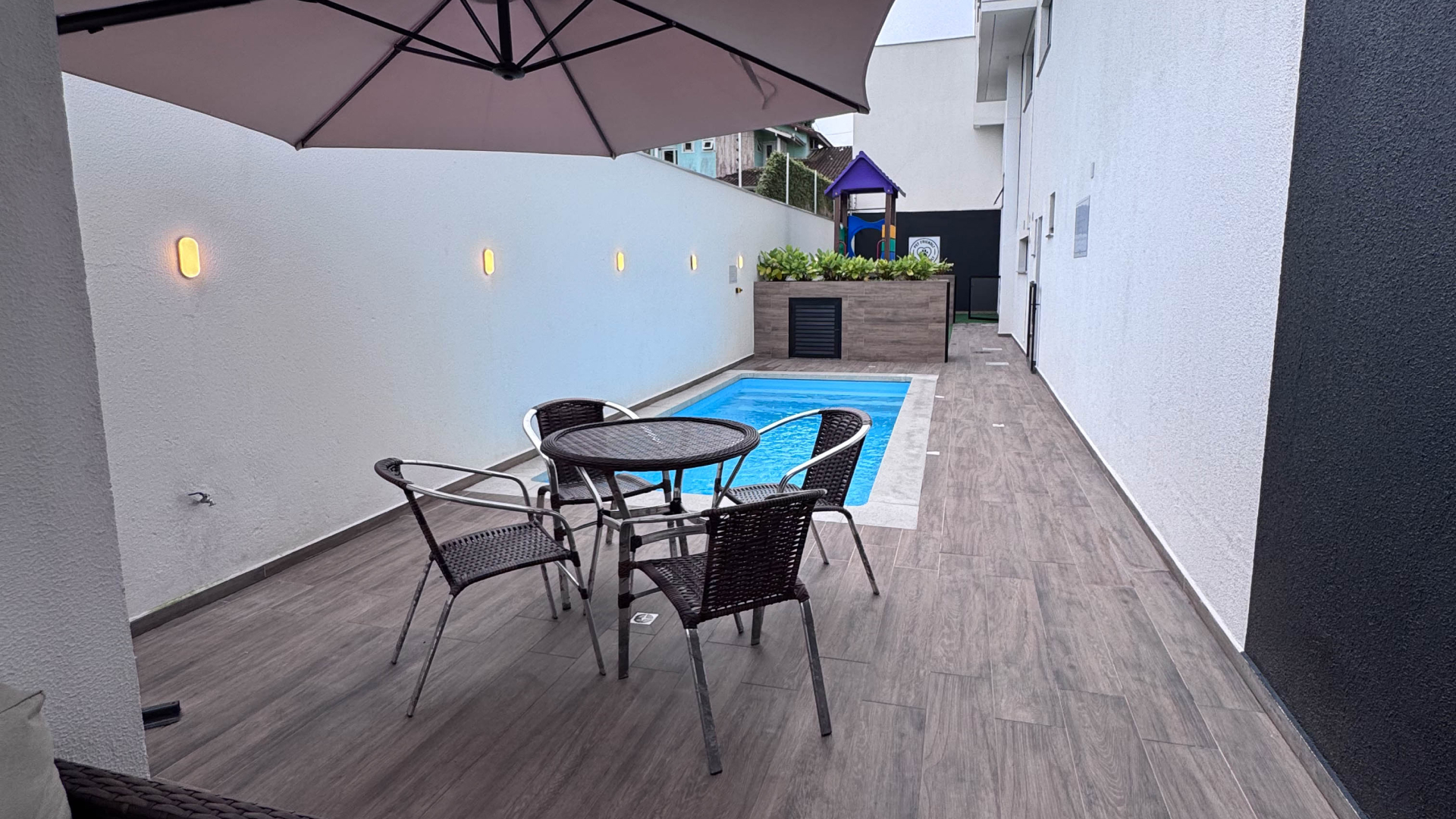 Planta com 3 dormitórios com infra para aquecimento a gás.