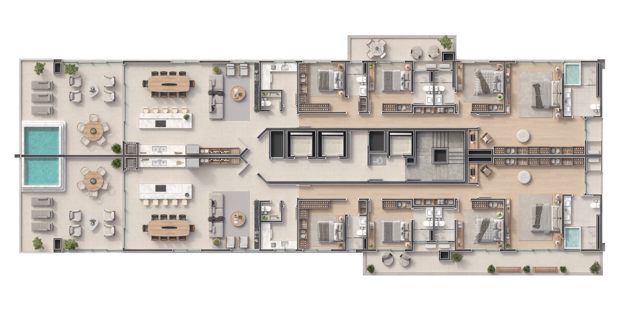 Com arquitetura impecável e acabamento de alto padrão, o Marítimo foi projetado para valorizar cada detalhe do seu estilo de vida, combinando conforto, elegância e um cenário inesquecível. Aqui, você terá um refúgio único que une o mar, o luxo e a tranquilidade em perfeita harmonia.